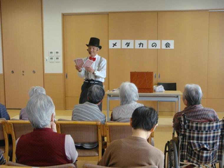 懐かしいメロディに昔を思い出す!?(もりの家サテライト) 更新日:2019年03月28日 今日は毎年お世話になっていますメダカの会の皆さんに来ていただき、 童謡の合唱、手品を披露して頂きました。懐かしい歌に「昔子供によく 歌っていたよ」と嬉しそうにお話されていた方もいました。 マジックショーでは、「あれ紐が一つになった。どうして?」 「手に隠しているでしょ!」などと声をかけあったりして盛り上がり ました。メダカの会の皆さん、本日はありがとうございました。