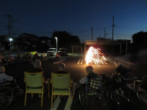 花火大会開催(もりの家サテライト) 更新日:2021年08月04日 猛暑が続きますが、ご利用者様に季節感を味わって頂きたく、花火大会を開催しました。花火の音を聞きつけ、ご近所様も駆け付け、一緒に楽しまれたようです。