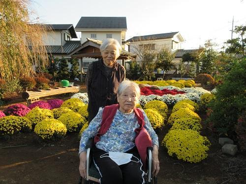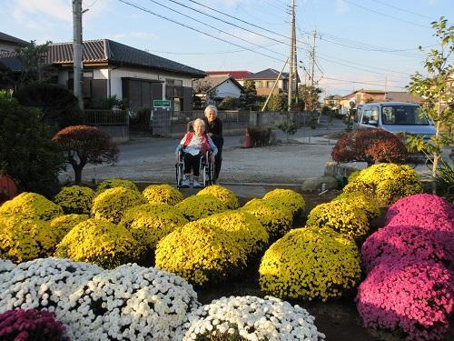 菊の花満開!(もりの家サテライト) 更新日:2021年11月03日 11月に入り朝晩の冷え込みが強くなりましたが、まだまだポカポカ陽気。 今日は菊の花が満開できれいだよという情報を耳にしたので、急遽菊の花の 見学ドライブに出かけました。色鮮やかな菊の花に「きれい」「感動した」 「手入れが大変でしょ」などと言って利用者様は喜ばれていました。