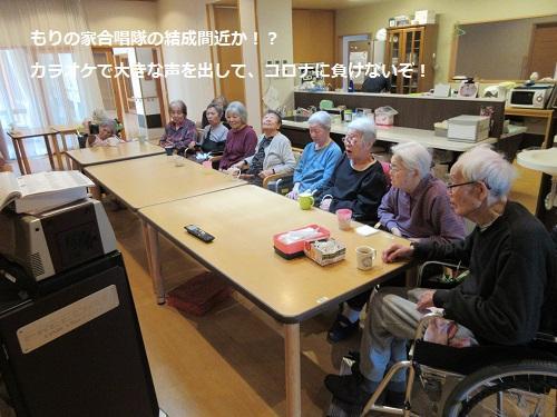 カラオケ大会開催!(もりの家サテライト) 更新日:2022年06月15日 大きな声をだして、コロナをやっつけようと題しまして、 サテライト合唱団を結成!コロナ禍で、大きな声を出しにくい 世の中になってしまいましたが、やっぱり大きな声で大好きな歌 を歌えることは、一つの喜びですよね。カラオケ大会後は、皆さん 表情が生き生きとされていました。