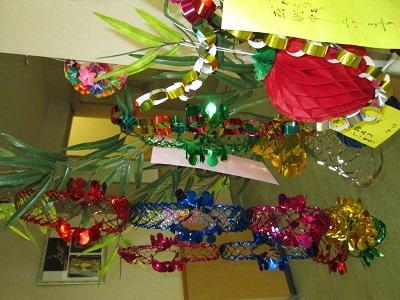 七夕の集い(ケアハウス) 更新日:2022年07月10日 本日は、七夕の集いの行事を実施しました。 織姫と彦星が会えるようにみんなで笹飾りを作り、貝飾りに食べ物に困らないように、ちょうちんに心が明るくなるようにの願いを込め、まだまだ続くコロナ禍に願いが叶うよう短冊を書きました。 昼食にはお寿司を食べて、心もお腹も満たされて、食べられる幸せに感謝しました。 食べきれない( ;∀;) みんなで飾り付けしました!(^^)!