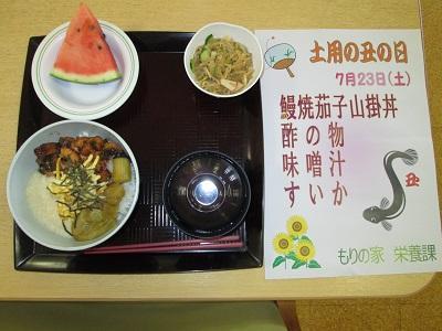 土用の丑の日(ケアハウス) 更新日:2022年07月23日 本日の昼食は、土用の丑の日のイベント食で、鰻と焼き茄子の山掛け丼が出ました。 これで夏バテ防止、コロナも吹き飛ばして、健康に過ごせたらと願うばかりです。