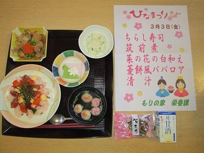 ひなまつり(ケアハウス) 更新日:2023年03月04日 3月3日のひなまつりに合わせて、昼食にイベント食と桜餅、甘酒を提供しました。 ひな人形の7段飾りと、ホールには吊るし雛を飾り、にぎやかに季節を味わっていただけたと思います!(^^)! ごちそう ケアハウスのお内裏様とお雛様