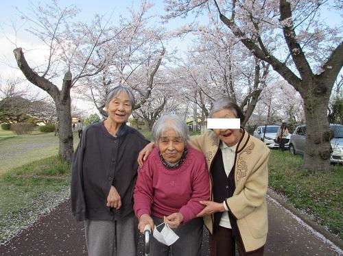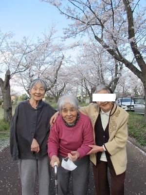 満開の桜に感動!(もりの家サテライト) 更新日:2023年04月03日 お天気がなかなか安定せず、お花見の日程を決めかねていたところ 午後に短時間だけ晴れ間が見えたので、急遽乙戸沼公園のお花見見学 を強行しました。仲良し3人組で記念撮影!ハイポーズ!