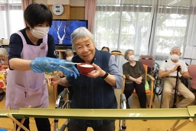 2023年8月夏祭りを楽しみました(デイサービス) 更新日:2023年08月12日 毎年恒例の夏祭りで流しそうめんにチャレンジしました(; ・`д・´)! その後はかき氷も美味しく召し上がりました( *´艸`) 勢いよく流れても上手にキャッチ!(^^)! 冷たくて頭がぁぁぁ・・・(>_<) 下流には流しません(。-`ω-)!
