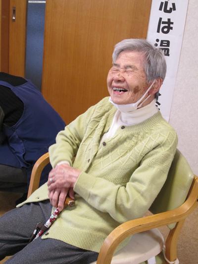 百寿のお祝い(ケアハウス) 更新日:2024年03月10日 ケアハウスで初めて百歳を迎えられた入居者様の百寿のお祝いをさせていただきました。 記念の名前詩とお花のアレンジメントをプレゼントし、素敵な笑顔をいただきした!(^^)! 満面の笑み 記念品