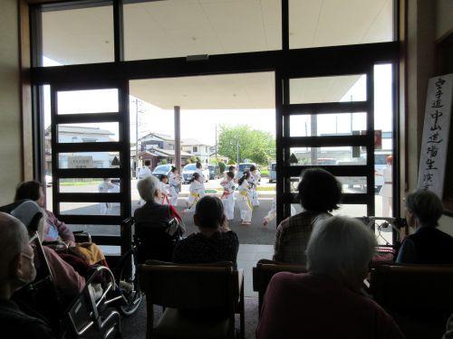 空手演武ボランティア(もりの家サテライト) 更新日:2025年05月03日 本日は、空手道中山道場の皆様に来所していただき、空手の演武を披露して いただきました。天気は良かったのですが、風がとても強かったので、利用者 様は玄関の中から見学させていただきました。気合の入った空手の演武に思わず 「エイ!ヤー」とマネをしながら利用者様は楽しまれていました。