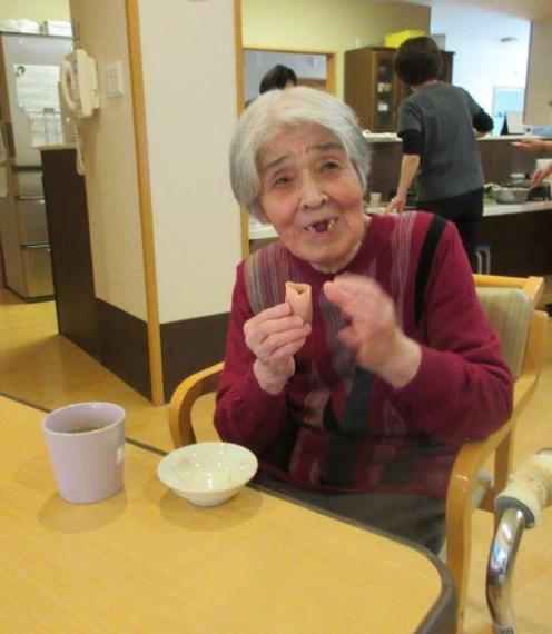 手作りおやつ会(桜餅編) 更新日:2025年05月21日 今日は、利用者様に美味しいおやつを食べていただきたいと、栄養士さんにも手伝っていただき、手作りの桜餅を作って提供しました。ふわふわの桜餅生地で「あんこ」を巻いて食べたおやつは、利用者様にも好評でした。