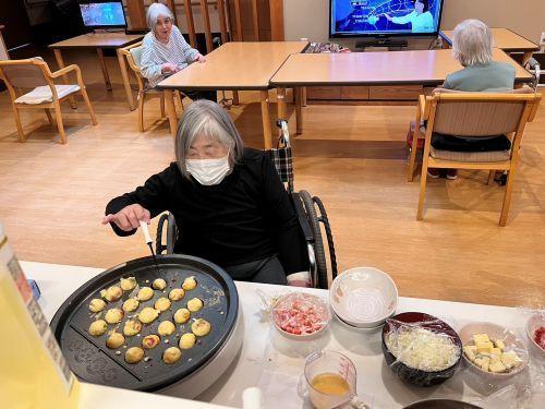 おやつレク(もりの家サテライト) 更新日:2025年11月17日 スタッフ、入居者様とたこやきつくりま~す。 いい香りにつられ、皆様が集まりました。 外はサクサク、中はフワフワで笑顔がこぼれてます。 「毎日でも食べたいね」と入居者様同士話されていました。